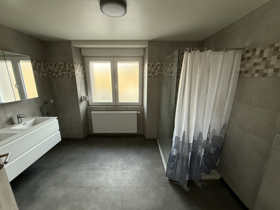 Au RDC : hall d'entrée, une première chambre de 10.5m2, Wc suspendu séparé, cuisine équipée (four / hotte / plaque de cuisson) ouverte sur un séjour de 28m2.
