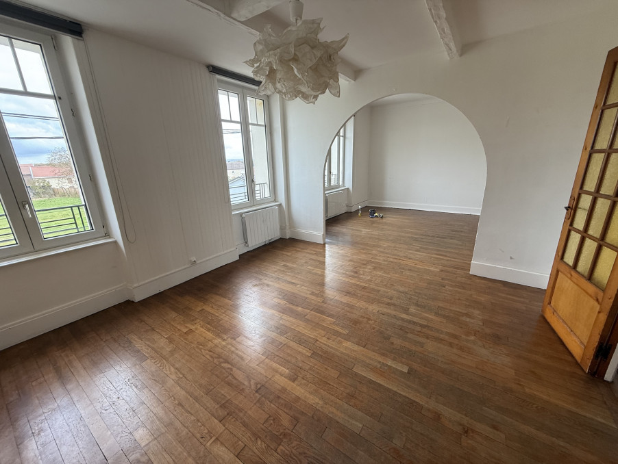 Appartement au 1er et dernier étage : Hall d'entrée, trois chambres, séjour avec poêle à pellet, cuisine