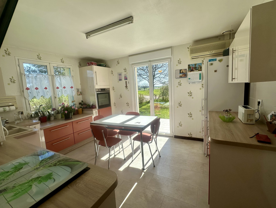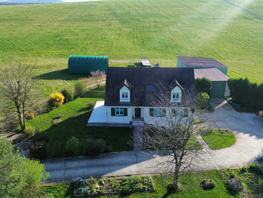Dans un cadre de vie verdoyant, offrant calme et sérénité, venez découvrir cette propriété individuelle située à une dizaine de minutes de Longuyon, sur un terrain de 5,9 hectares, sans aucun vis-à-vis !Cette maison d’environ 130 m² habitables comprend, au rez-de-chaussée, un hall d’entrée desservant une cuisine équipée et lumineuse avec accès à la terrasse, un salon-séjour de 32 m² avec poêle à bois et accès extérieur. Deux chambres de 10 et 11 m², dont une avec placards, une salle de bains avec douche, baignoire et vasque. WC séparé et cellier.