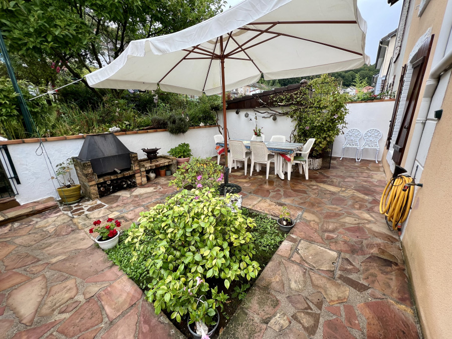 Terrasse de 30m2, deux abris de jardin, jardin.