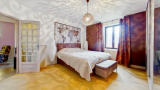 À l'étage, un grand hall de 26 m² dessert un bureau et trois belles chambres de 18 m², 15 m² et 28 m², offrant confort et luminosité. Les annexes comprennent un grenier, une buanderie, deux garages de 20 m² et 30 m², une grande terrasse, un jardin paysager et plusieurs espaces de stationnement.
