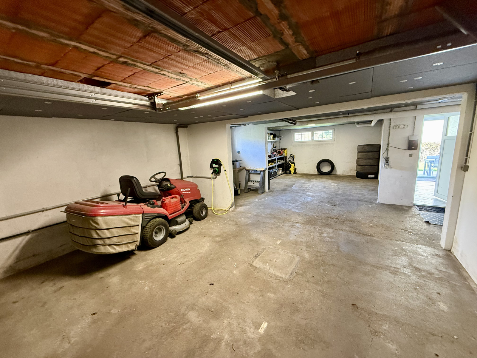 - Un garage de 48 m² pouvant accueillir deux véhicules, avec porte motorisée et borne de recharge électrique (inclus)