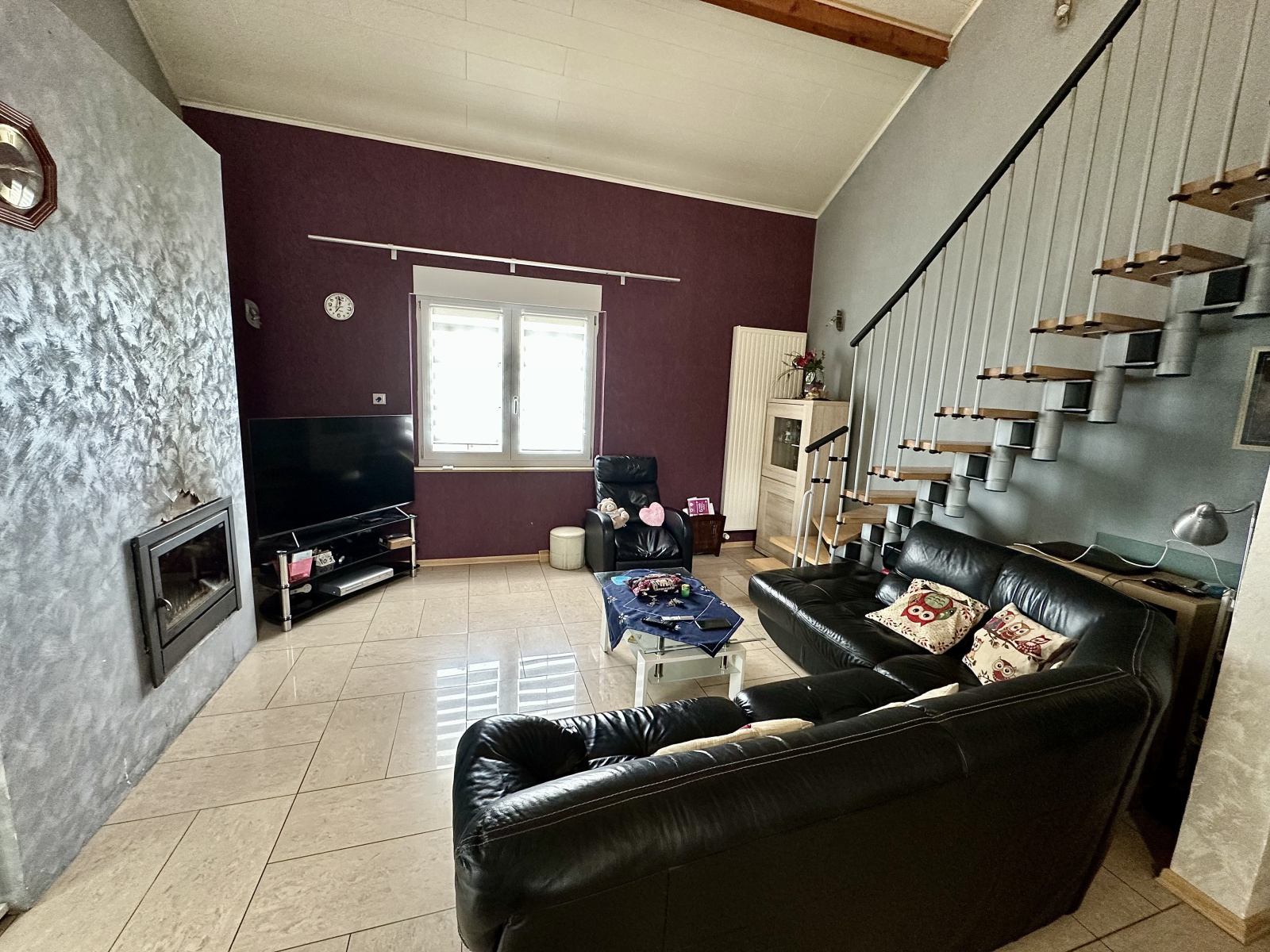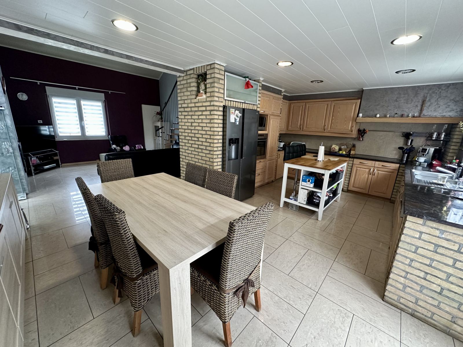 à vendre à Charency-Vezin, belle maison familiale de construction belge, édifiée en 2000, offrant de beaux volumes et un cadre de vie agréable, au calme, à proximité de Longuyonn, Montmédy et Virton. Au rez-de-chaussée, vous trouverez un hall d'entrée spacieux, un garage permettant de stationner deux petits véhicules, une chaufferie, une remise, une cave, une chambre spacieuse ainsi qu'une salle de bains avec douche et WC. à l'étage principal, la maison dispose d'une cuisine équipée moderne en chêne de qualité, ouverte sur un salon/séjour lumineux de 33 m² avec insert à bois. Vous y trouverez également une salle de bains avec baignoire balnéo, vasque, bidet et WC suspendu, un WC séparé, deux chambres confortables et une buanderie avec accès extérieur. Le dernier niveau propose une belle mezzanine, une salle de bains avec douche, vasque et WC, une pièce polyvalente (salle de jeux, bureau...) ainsi qu'une chambre supplémentaire. à l'extérieur, vous profiterez d'une grande terrasse, d'un vaste terrain aménagé sur deux niveaux avec deux abris de jardin et four à pizza (possibilité d'acheter la parcelle de 4 000m2 au complet ou de réaliser un découpage). La maison est équipée d'un chauffage au fioul, d'un insert à bois et de panneaux solaires pour plus de confort et d'efficacité énergétique. Avec au moins une chambre, une salle de bains et un WC à chaque étage, cette maison est parfaitement adaptée aux familles souhaitant vivre ensemble tout en préservant l'intimité de chacun.